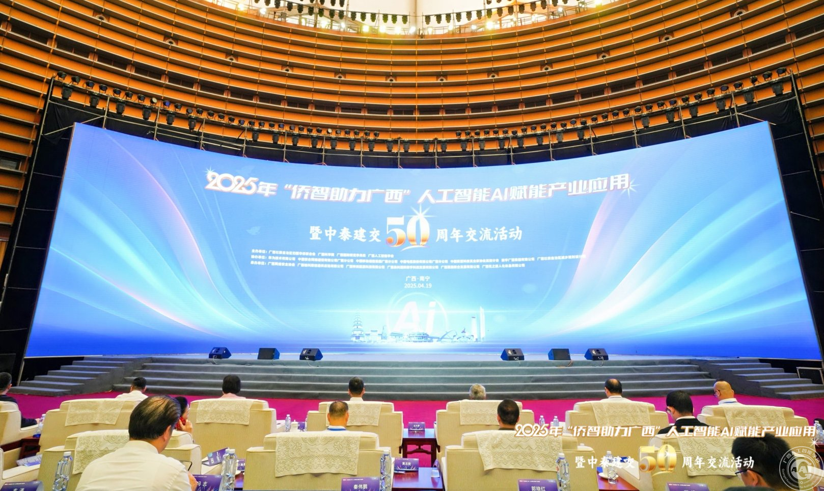 4月19日,由广西侨联、广西科学院、中国—东盟博览会秘书处、广西人工智能学会联合主办,广西网络安全协会、广西桂科院佰通供应链有限公司、广西神洲能源科技有限公司、广西泰抖国际数字科技发展有限公司、广西聚腾联合发展有限公司、广西花之丽人化妆品有限公司共同承办的2025年“侨智助力广西”人工智能AI赋能产业应用暨中泰建交50周年交流活动在南宁国际会展中心举行。