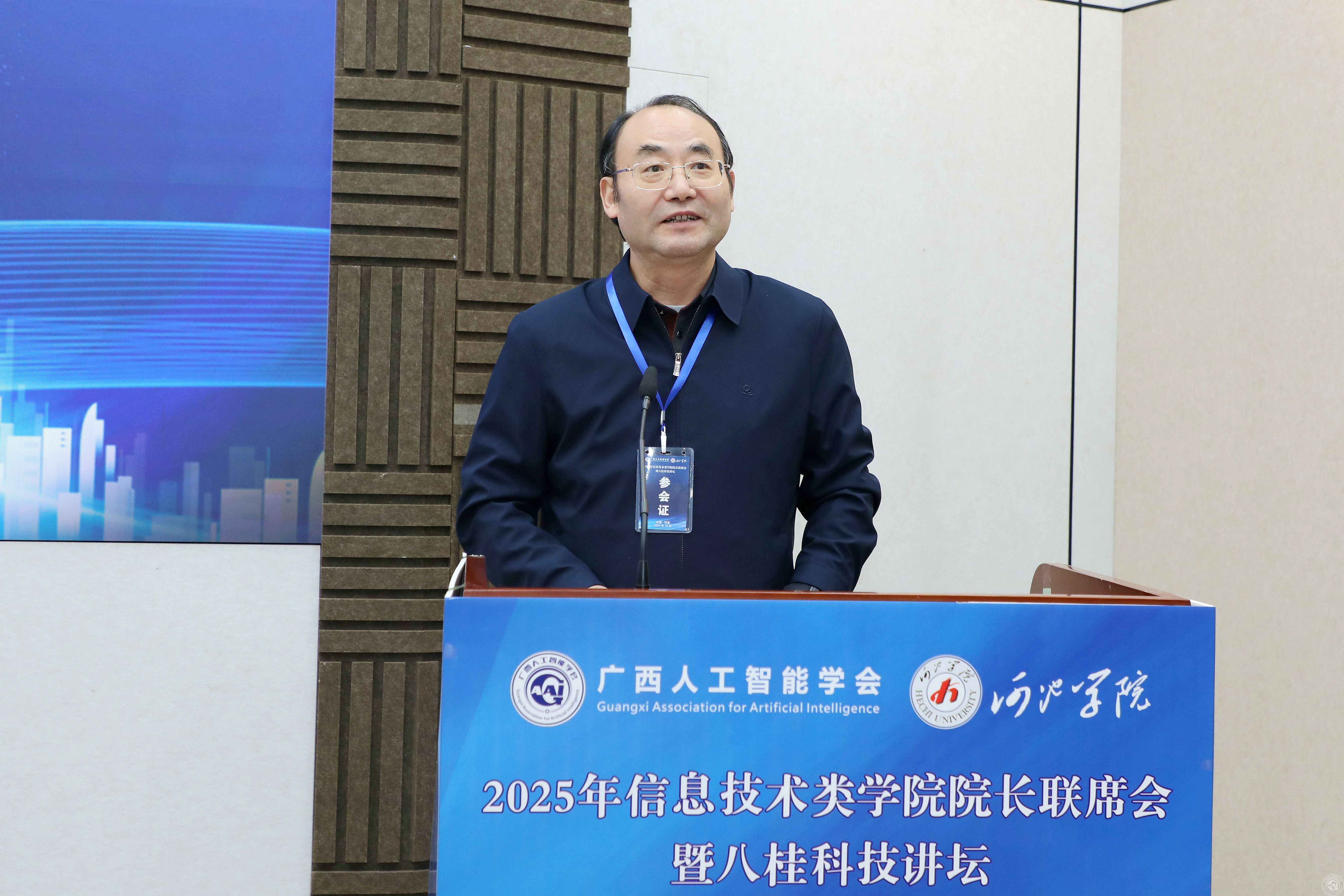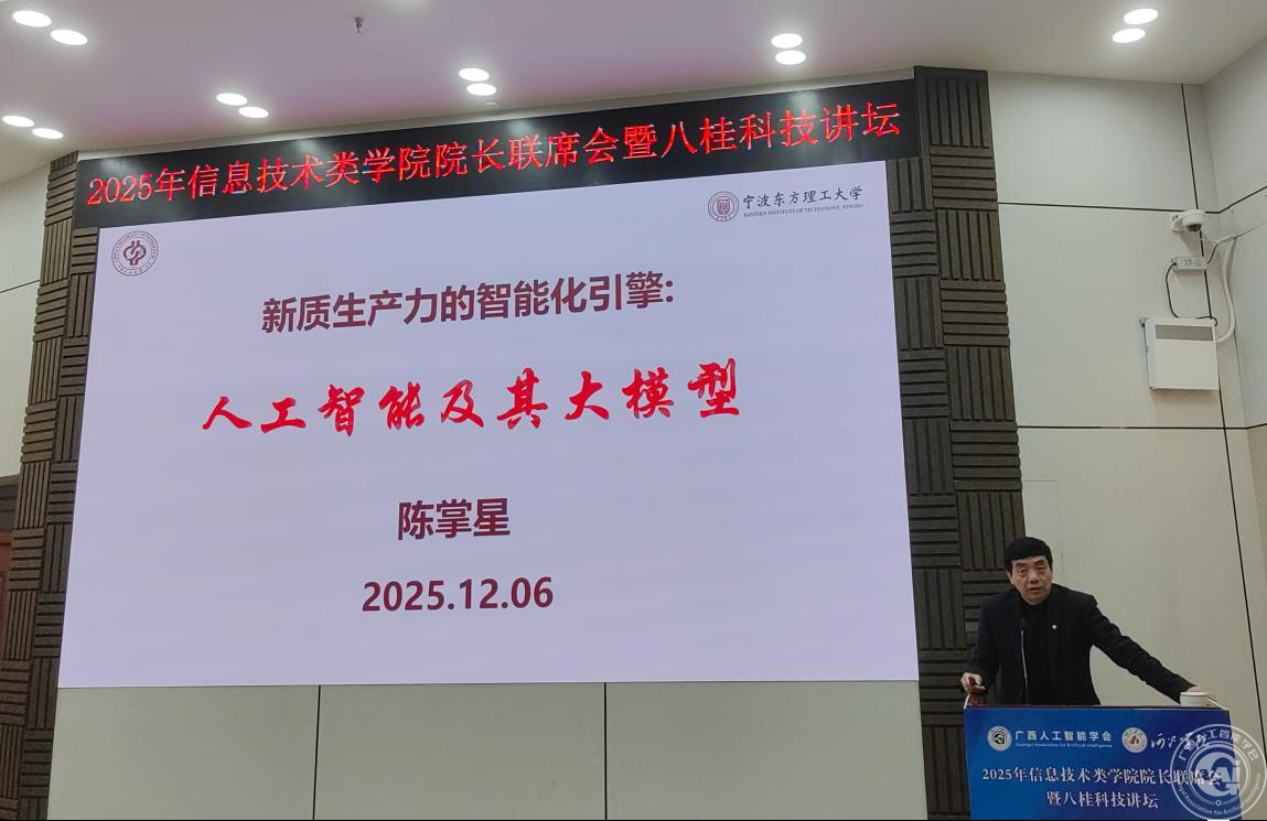 12月5-6日,由广西人工智能学会主办、河池学院承办的2025年信息技术类学院院长联席会暨八桂科技讲坛在广西河池市召开。会议特邀美国国家工程院院士、中国工程院外籍院士陈掌星作专题报告。广西人工智能学会理事长元昌安,河池学院党委书记甘毅,河池市委常委、副市长陈志杰出席本次大会并致辞。开幕式由河池学院党委常委、组织部部长、数字战略发展研究院院长易云飞主持。