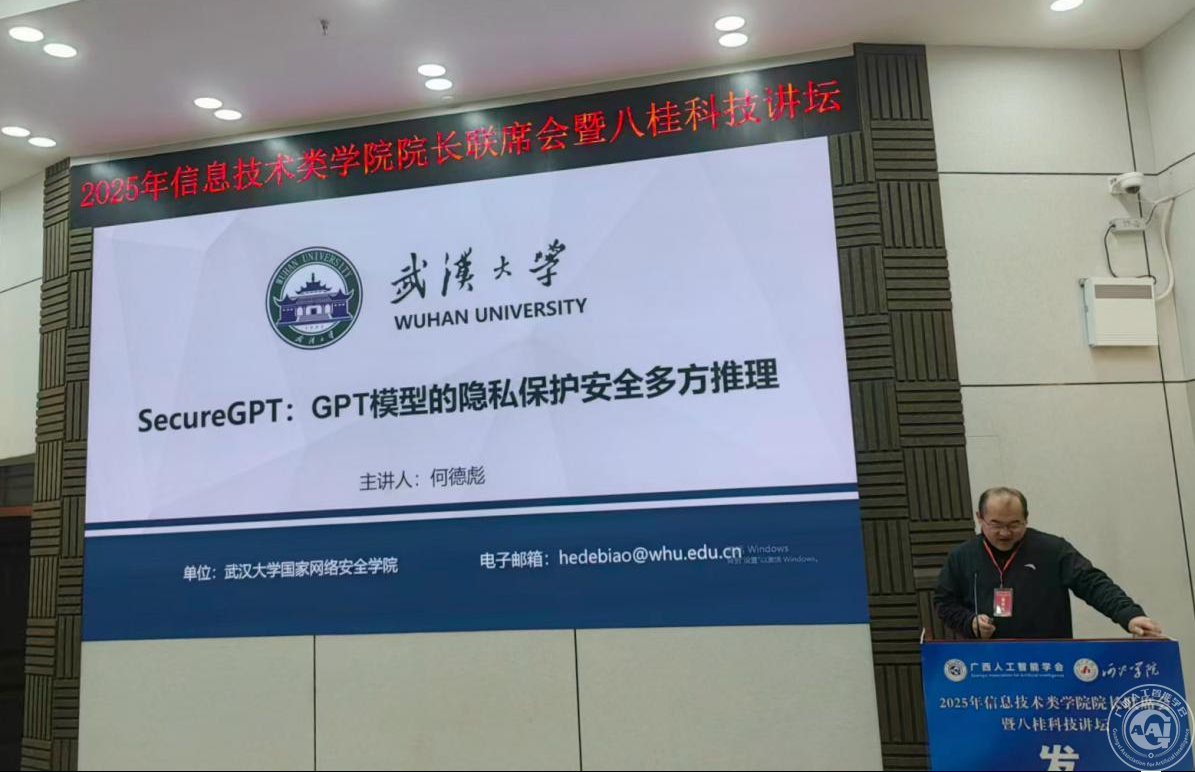 武汉大学国家网络安全学院教授、博士生导师何德彪作《SecureGPT: GPT模型的隐私保护安全多方推理》报告,系统性地分享了当前隐私保护安全领域的前沿知识,结合行业发展趋势与多元应用场景,进行了深入浅出的剖析与展望,为相关领域的科研与实践提供了富有洞见的指导。