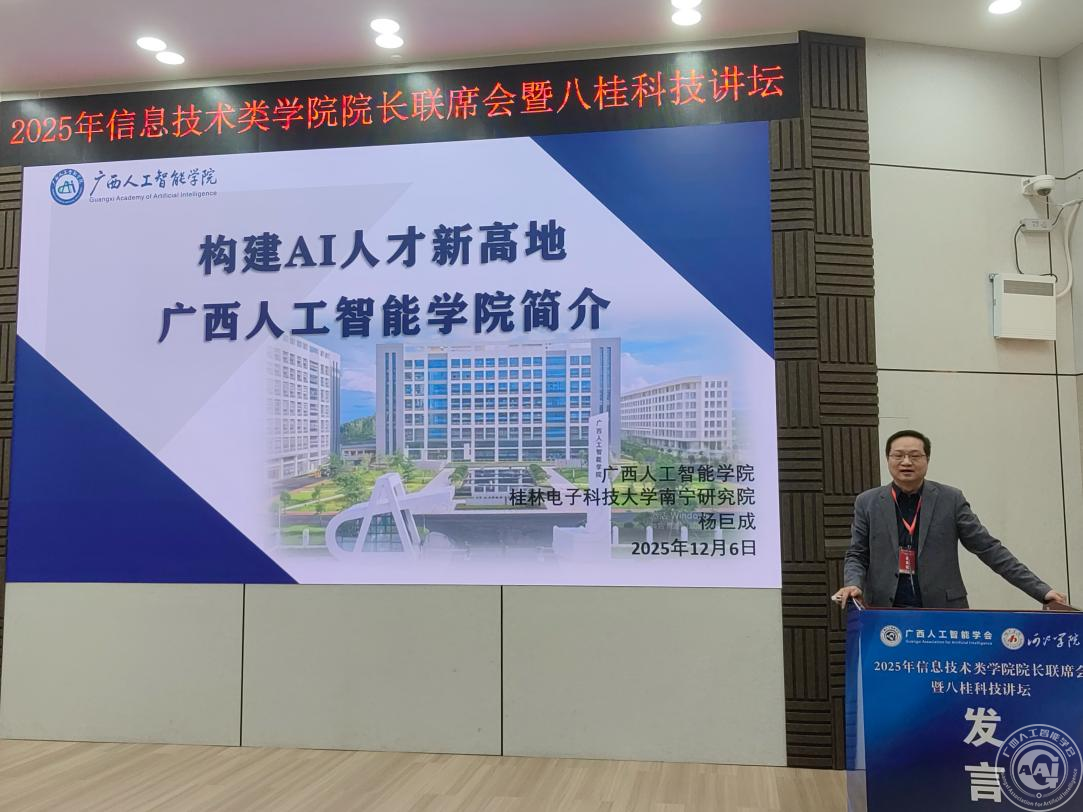 广西人工智能学院院长、桂林电子科技大学南宁研究院院长杨巨成作《构建AI人才新高地 广西人工智能学院简介》报告,介绍了广西人工智能学院如何通过先进的AI技术有效赋能区域经济社会发展培养高水平的人工智能专业人才,积极推动科技创新与产业融合,为中国-东盟命运共同体的构建提供了坚实的AI高端人才支撑和核心发展动能。