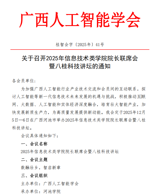 【通知】关于召开2025年信息技术类学院院长联席会暨八桂科技讲坛的通知