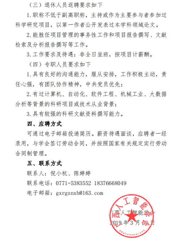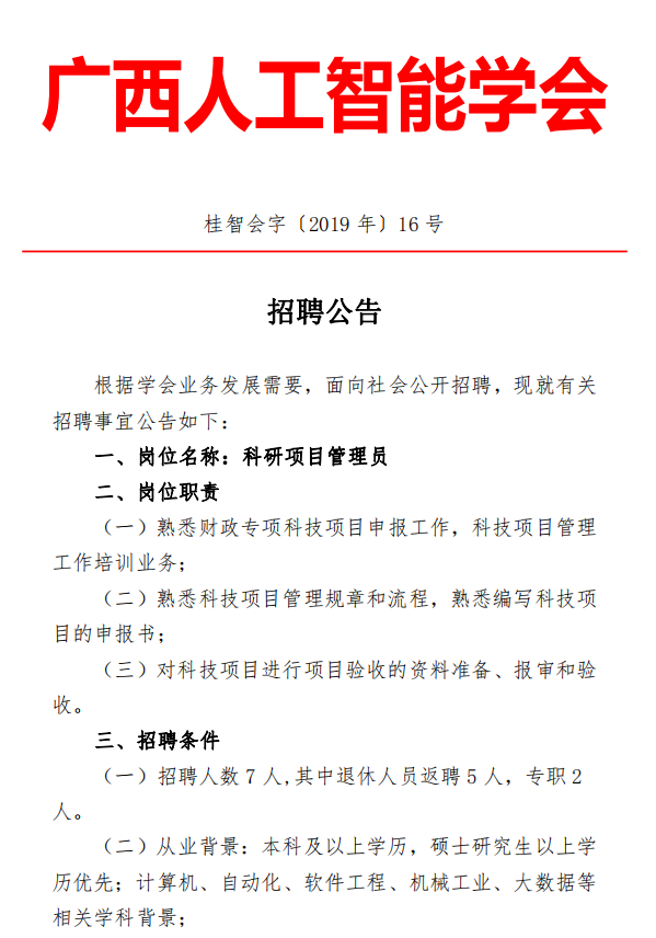 【招聘】广西人工智能学会招聘公告