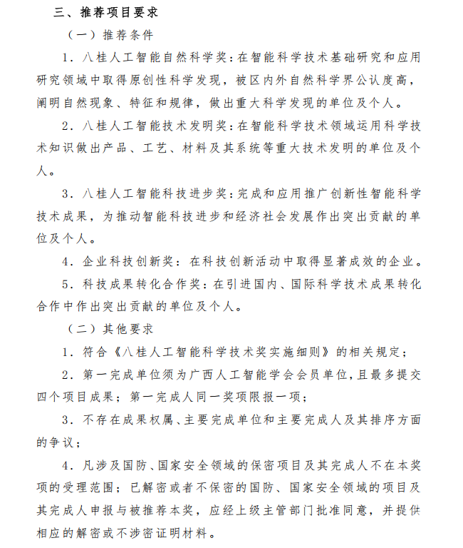 2.《八桂人工智能科学技术奖励实施细则》(试行)