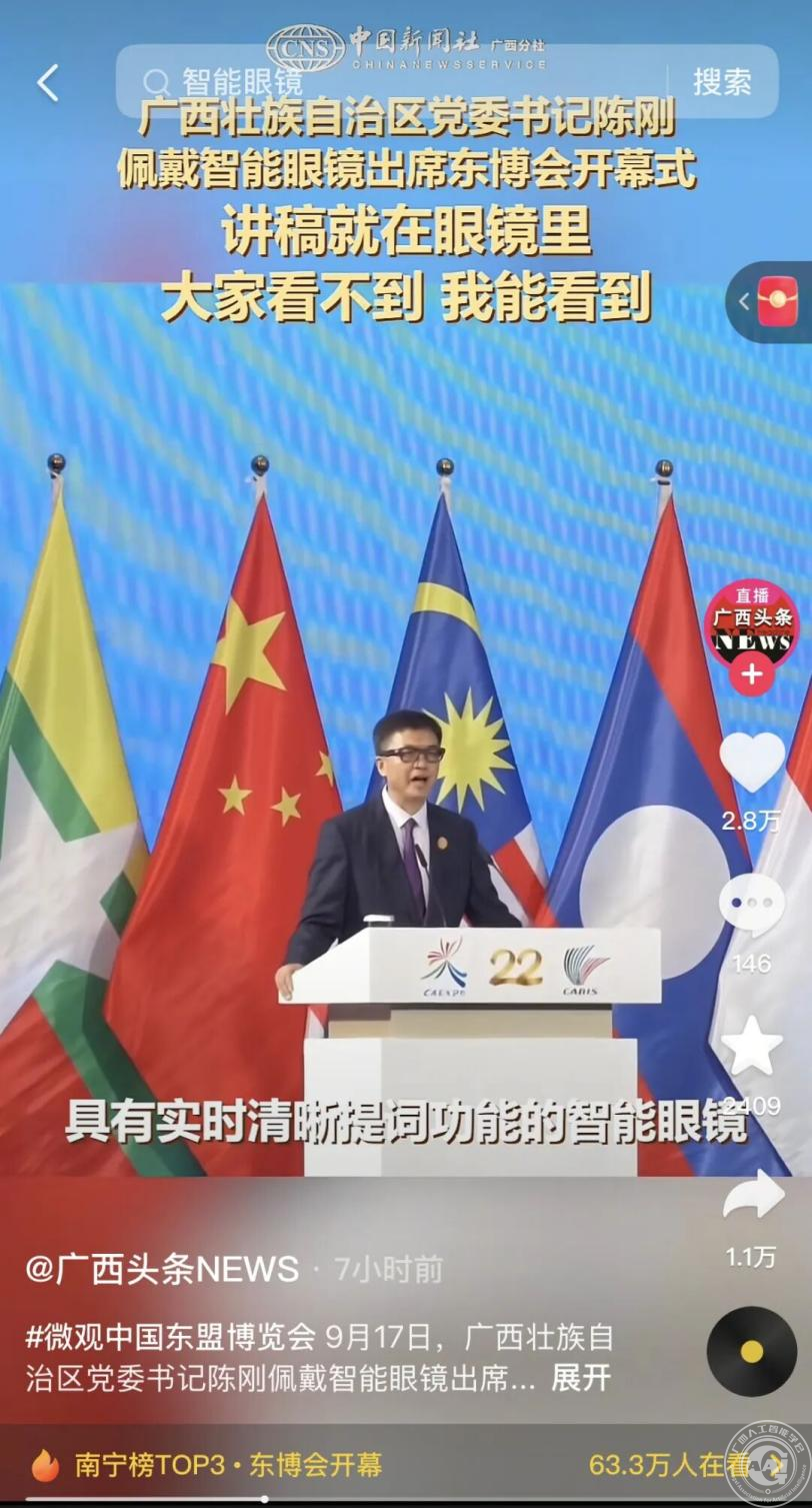 本届展会聚焦 “数智赋能发展,创新引领未来——以中国—东盟自贸区3.0版新机遇助建命运共同体” 主题,多项科技创新成果集中亮相。其中,广西壮族自治区党委书记陈刚在开幕式上重要发言环节的 “无稿演讲” 场景引发广泛关注,其佩戴的广西企业生产智能眼镜背后,核心技术支撑源自迈越科技股份有限公司。